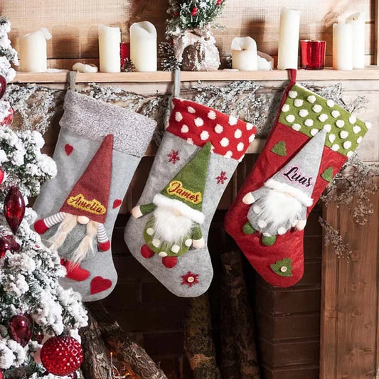 Personalized Buffalo Plaid Christmas Stocking with Name Bear Elk Deer Tree Antler Christmas Gift for Kids Family