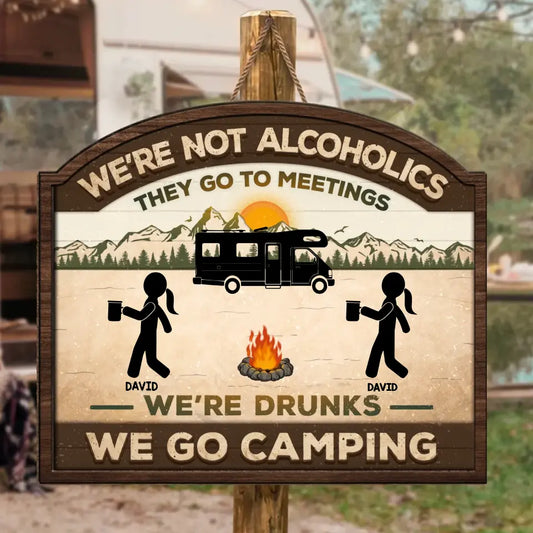 We're Not Alcoholics They Go To Meeting - Personalized Metal Sign, Gift For Camping Lovers