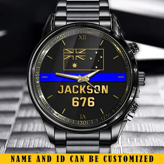 Personalized Australian Police Thin Blue Line Custom Name & ID Watch Printed