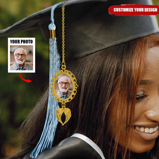 Personalized Graduation Tassel Photo Charm with Angel Wings