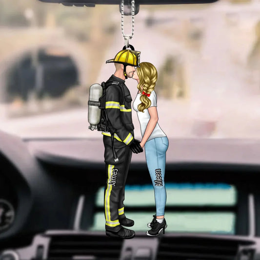 Personalized Car Acrylic Ornament, Couple Portrait, Firefighter, EMS, Nurse, Police Officer, Military, Gifts by Occupation