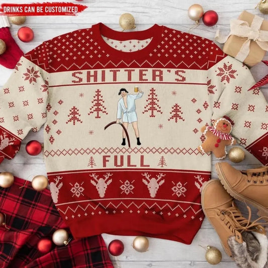 Sh*tter's Full Ugly Christmas Sweater – Personalisierter Wollpullover, All-Over-Print-Sweatshirt