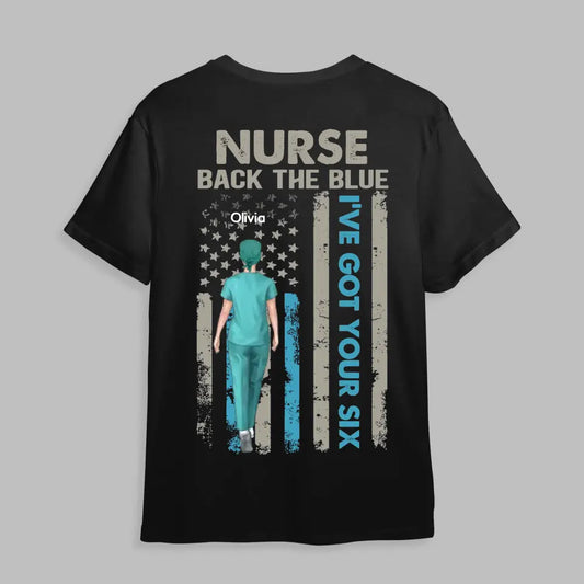 Personalized Nurse Back The Blue I've Got Your Six US Flag Gift For Nurse T-shirt