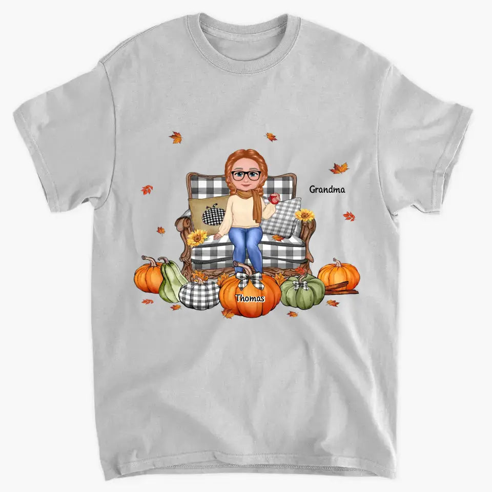 Grandma Sitting On Chair Pumpkins Personalized Shirt