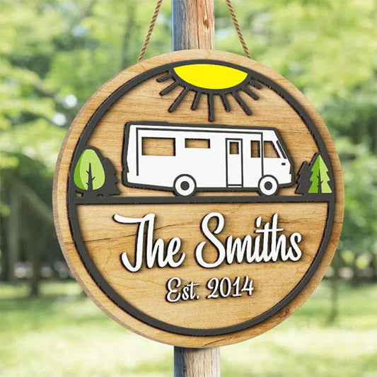 Family Camping Trip - Personalized Shaped Wood Sign, 2 Layers Sign - Gift For Camping Lovers
