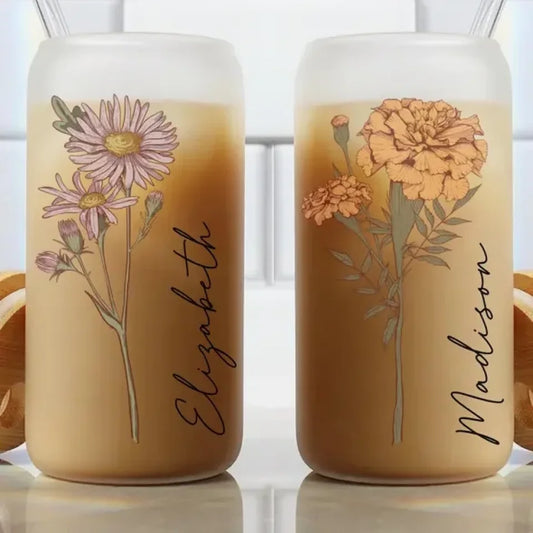 Personalized Birth Flower Tumbler, Gifts for Her, Bridesmaid Proposal Gift, Mother's Day Gift, Birthday Present, Custom Glass Coffee Cup