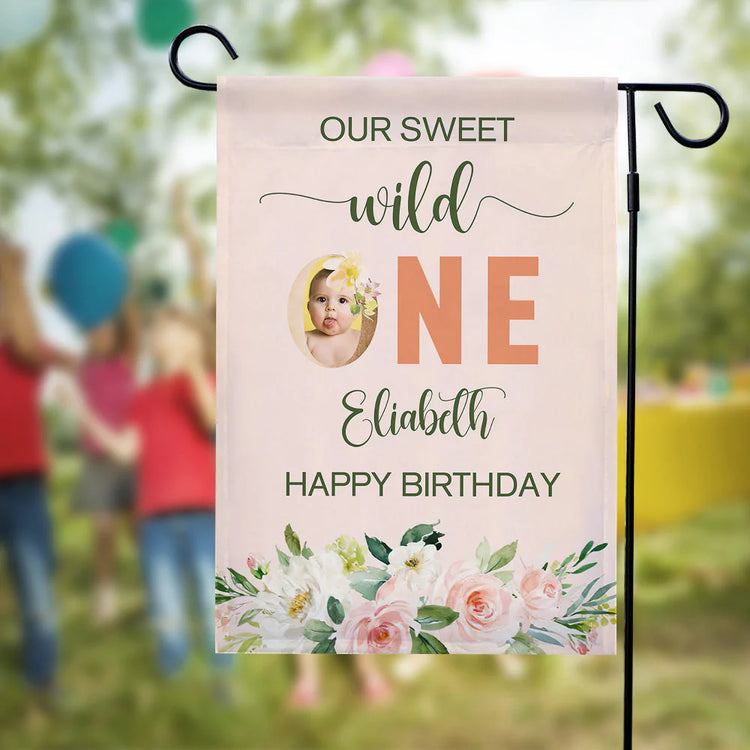Personalisierte Gartenflagge „Oma's Lil‘ Birds“, bedruckt