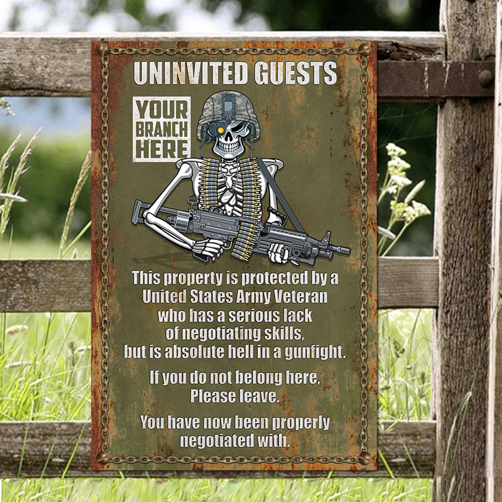 Personalisiertes Metallschild für ungebetene Gäste „This Property Is Protected By A Veteran“ für Veteranen