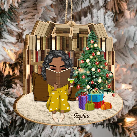 Reading Girls Sitting Relax At Home - Christmas Gift For Books Lovers - Personalized Custom Shaped Wooden Ornament
