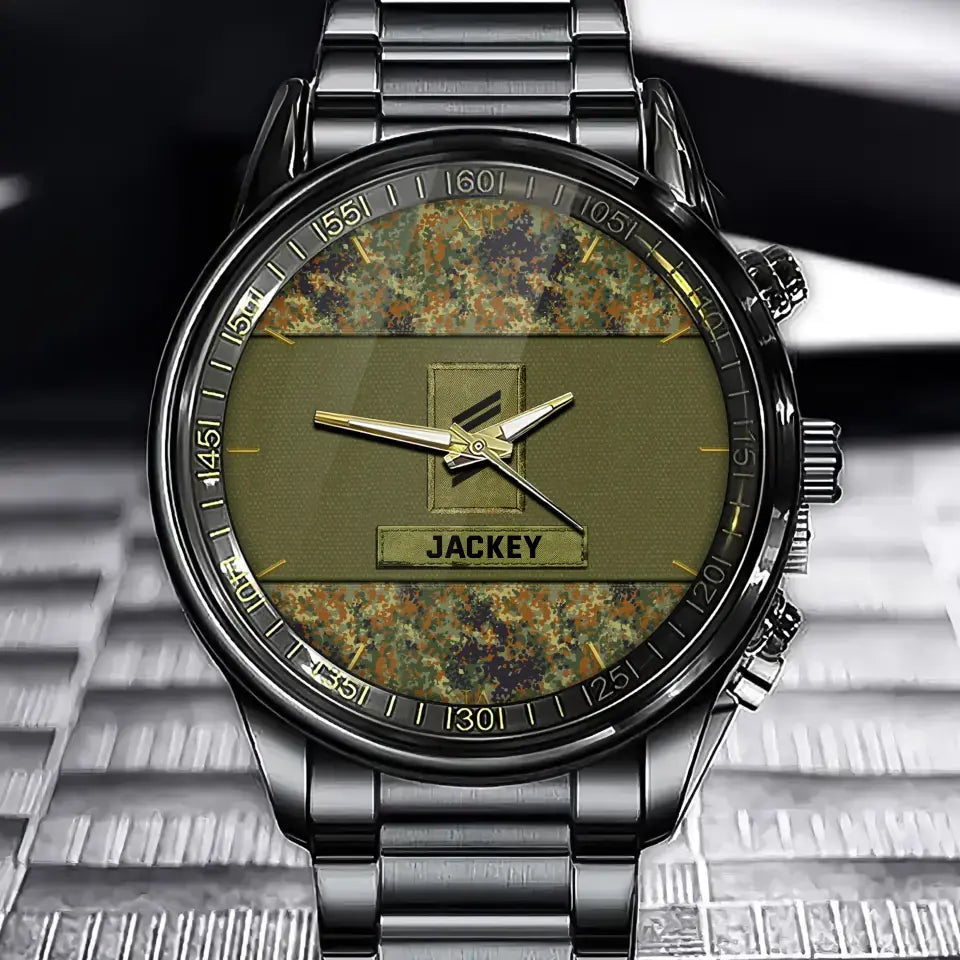 Personalisierte deutsche Veteranen-Rang-Tarnmuster-Individuelle Namensuhr