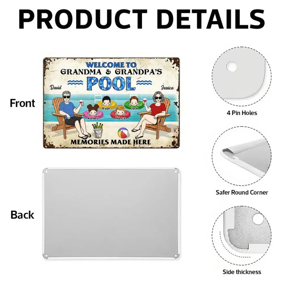 Welcome To Grandparents Pool Personalized Metal Sign, Housewarming Gift, Birthday Gift For Dad Mom Grandpa Grandma